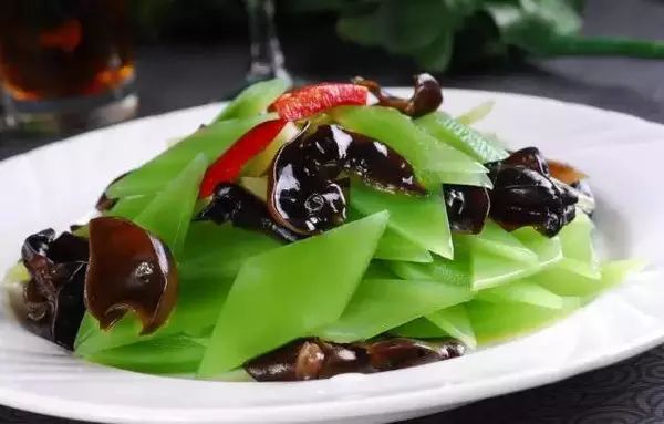 木耳味甘,性平,能益气强身,有活血效能,并可防治缺铁性贫血等;可养血驻颜,令人肌肤红润,容光焕发,同时对高血压、高血脂、糖尿病、心血管病有防治作用。莴笋炒木耳具有降三高的功效。