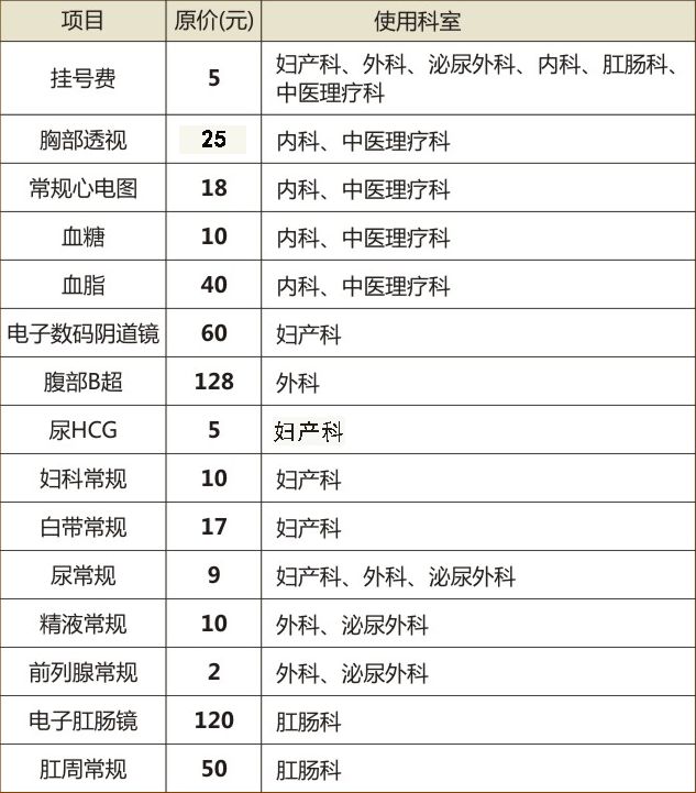 温馨提示:1、以上项目仅限门诊使用,住院不享受检查优惠;2、一人限使用一个科室优惠项目,单人不能各科室优惠检查叠加使用;3、精神科、静脉曲张科、碎石科、口腔科、痛风科不参与优惠检查活动。